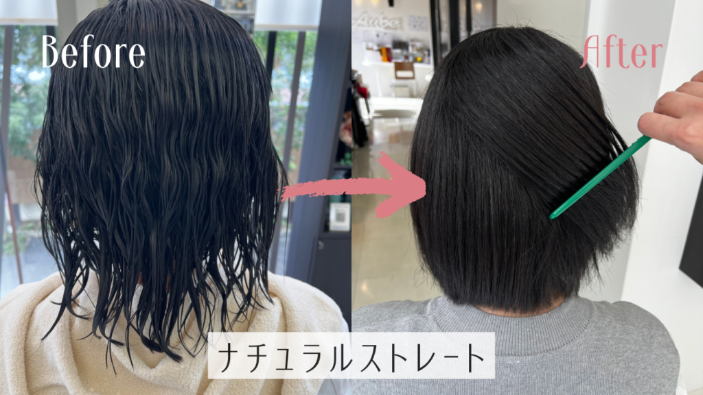 自然なストレート感で、従来のストレートパーマに比べてダメージも少なく、まとまりとツヤを与えてくれるメニューです。