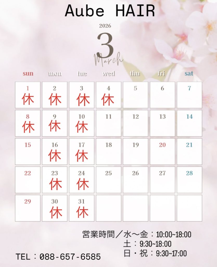3月の営業日のお知らせです。